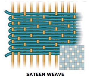 The sateen’s structure places more threads on the surface, producing the sheen and softer feel. A sateen uses of a different structure in the weaving process, usually a four-over, one-under.