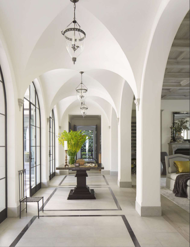 The owners have achieved an almost perfect balance of traditional yet modern design. The columns, cornices, and arches remind us of the Spanish Revival style which are synonymous with California, but the doors, outdoor sculpture, and general brightness of the space make it perfect for today as well.