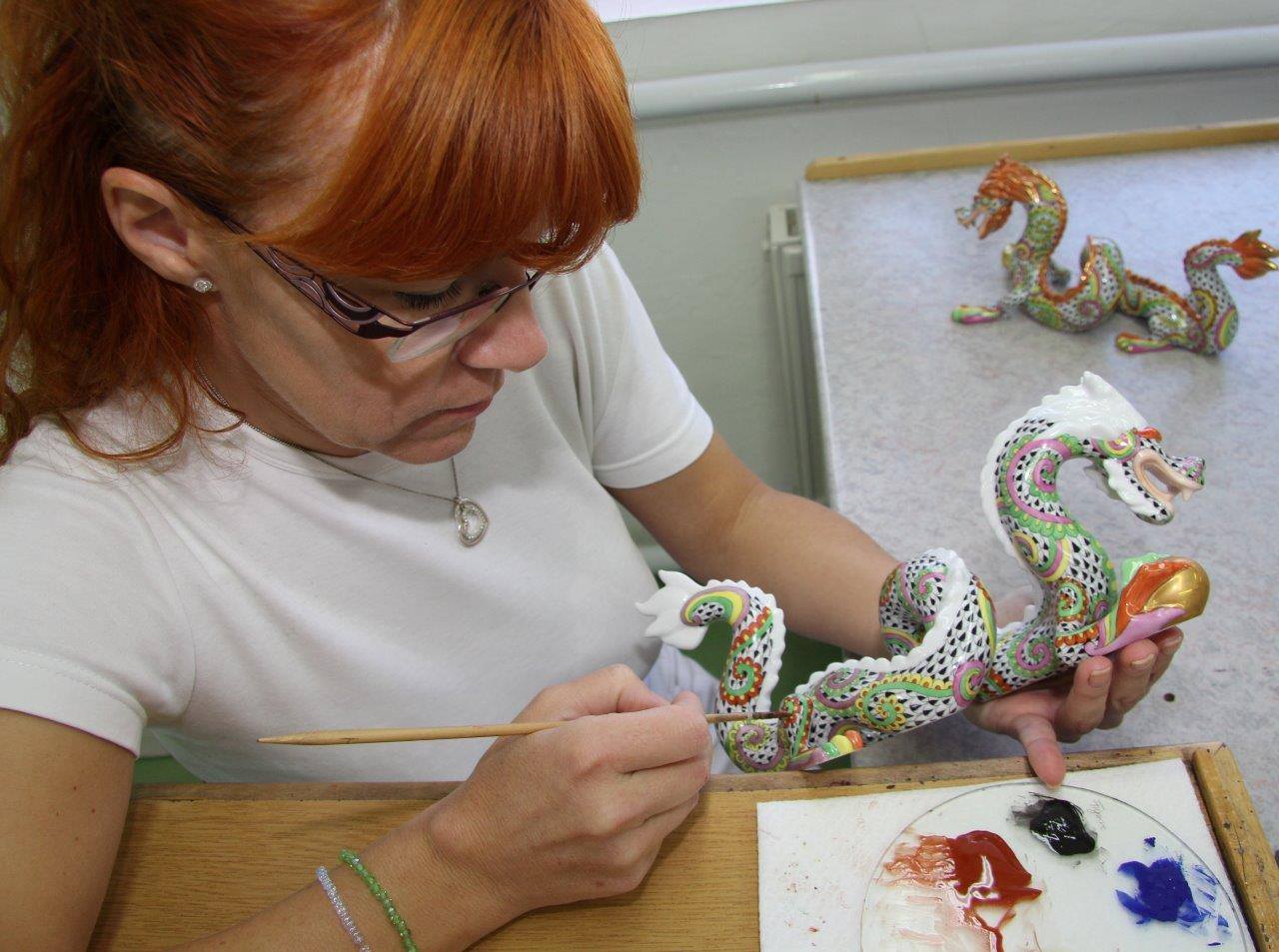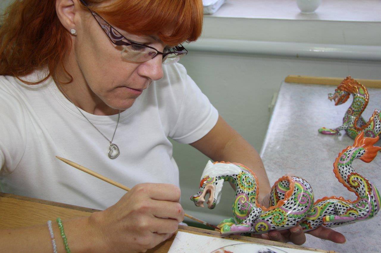 And of course, because every piece is hand painted by an artist who has trained for at least three years before they are qualified, the subtle variations make them charming and completely unique. Here is one of them at work on a special edition Fireworks Dragon: