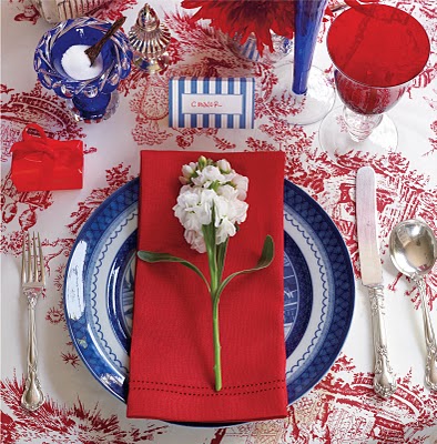 Her brilliant tabletop for the June issue of House Beautiful bears the trademark Kim Seybert color and vibrance: