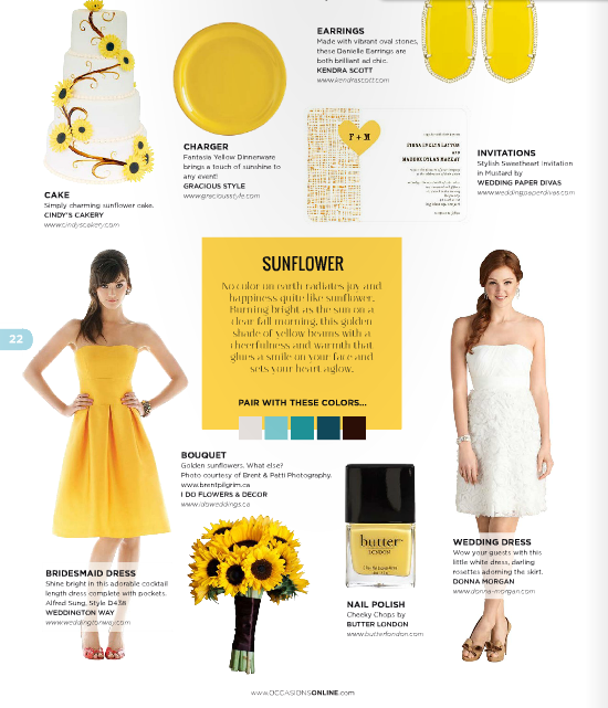 Marrying the magic of summer with the anticipation of Holiday merriment, Fall is the perfect time for a truly enchanting wedding. And who better to keep us on trend than Occasions Magazine? Here, we give a peek at their Fall 2014 issue, where they feature our Vietri Fantasia Dinnerware and Waterford Lismore Crimson Champagne Flutes in their delightful Sunflower and Scarlet motifs.