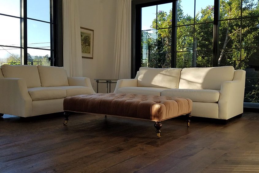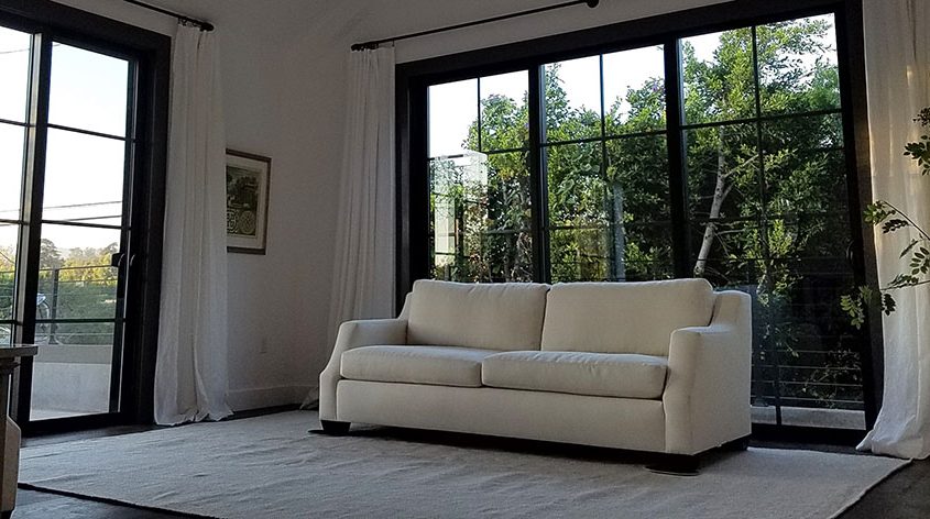 Here’s the room with the loveseat in place. Before you place your furniture, look at the room and really think about where it should go. In the picture below, note how well the larger sofa works with the larger patio door behind it, while the loveseat is scaled to fit the smaller patio door on the left.