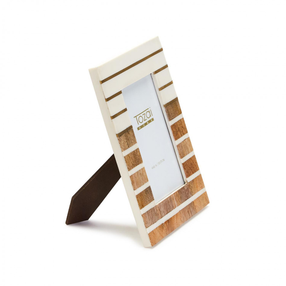 Thompson Set of 2 Photo Frames with Brass inlay (4" x 6", 5" x 7") Mango Wood/Resin/Brass/Glass